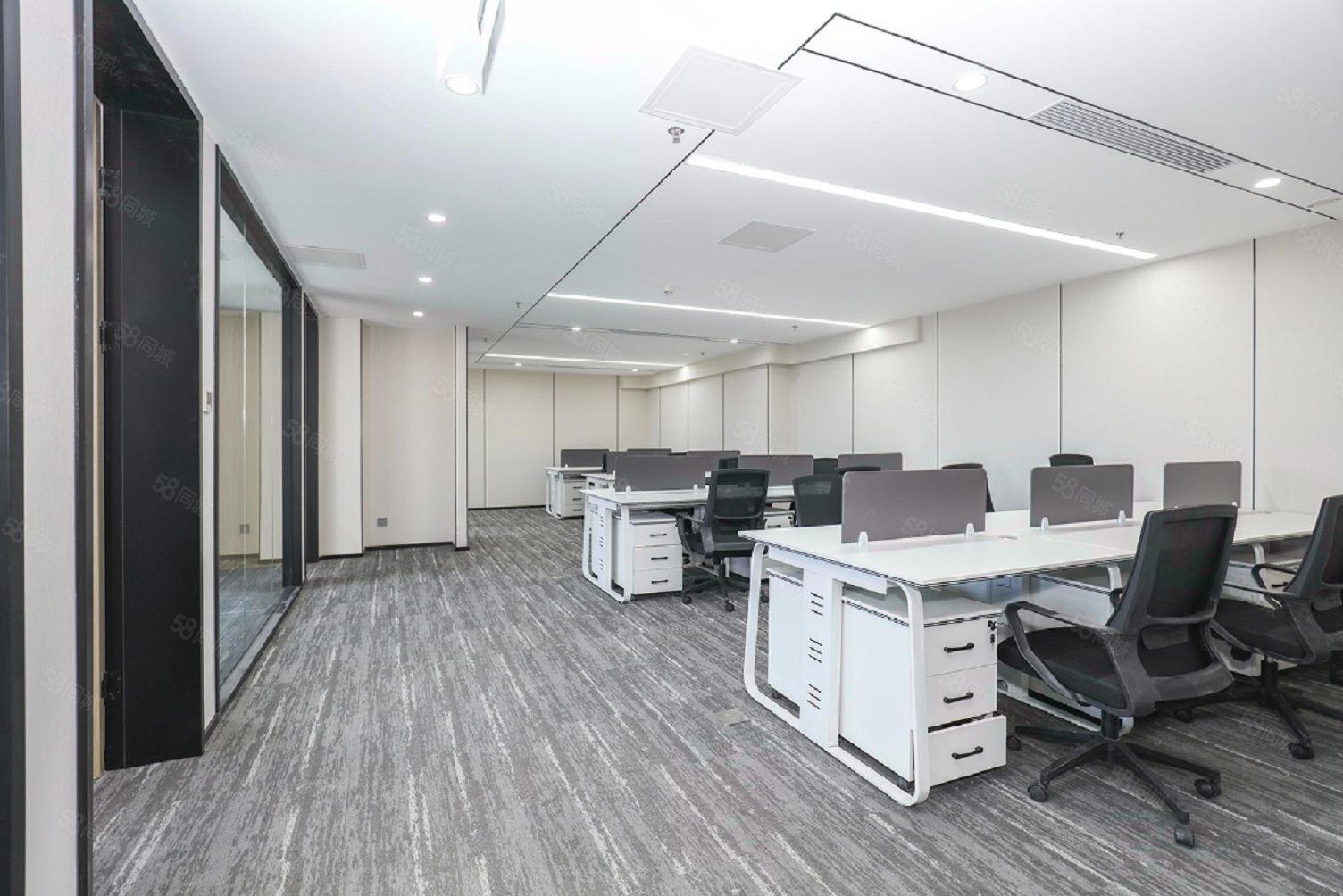 【装修格局】:内有前台、开间(员工区域)、会议室、财务室、经理室及老板间;布局合理方正,使用率高,无浪费面积。为精装修。